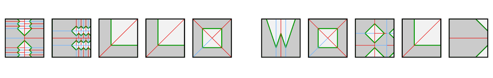 By contrast, Erik D. Demaine and Martin L. Demaine develop static puzzle fonts in which reading the intended message requires solving a series of visual puzzles. These fonts illustrate the conceptual challenges embedded in the underlying algorithmic problems (Demaine & Demaine, 2015), emphasizing what is expressed by the font itself rather than by the text written with it. Shown here is “HELLO WORLD” rendered in the Orthogonal Fold & Cut Font on Demaine et al. ’s website (2023).