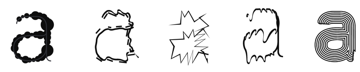 Pereira et al. (2019) even developed a computational system that allows the algorithmic creation of glyphs from typographical skeletons using different generative drawing techniques. Take a look at more of them: https://cdv.dei.uc.pt/2019/letterspecies/
